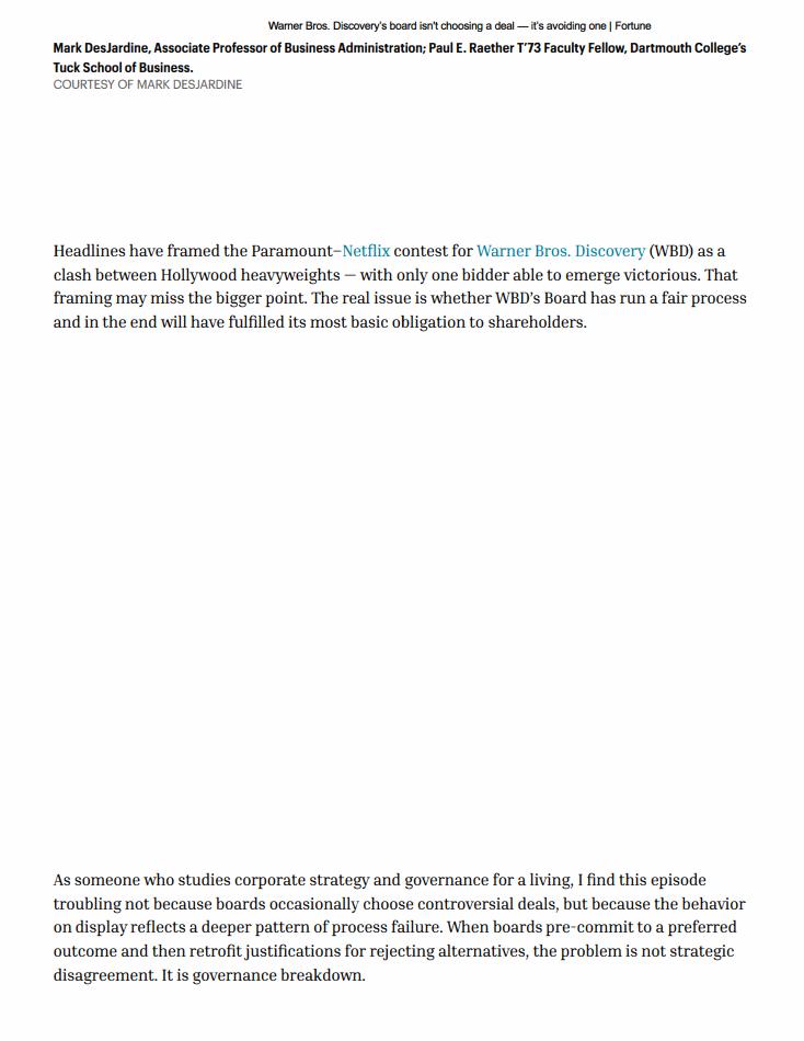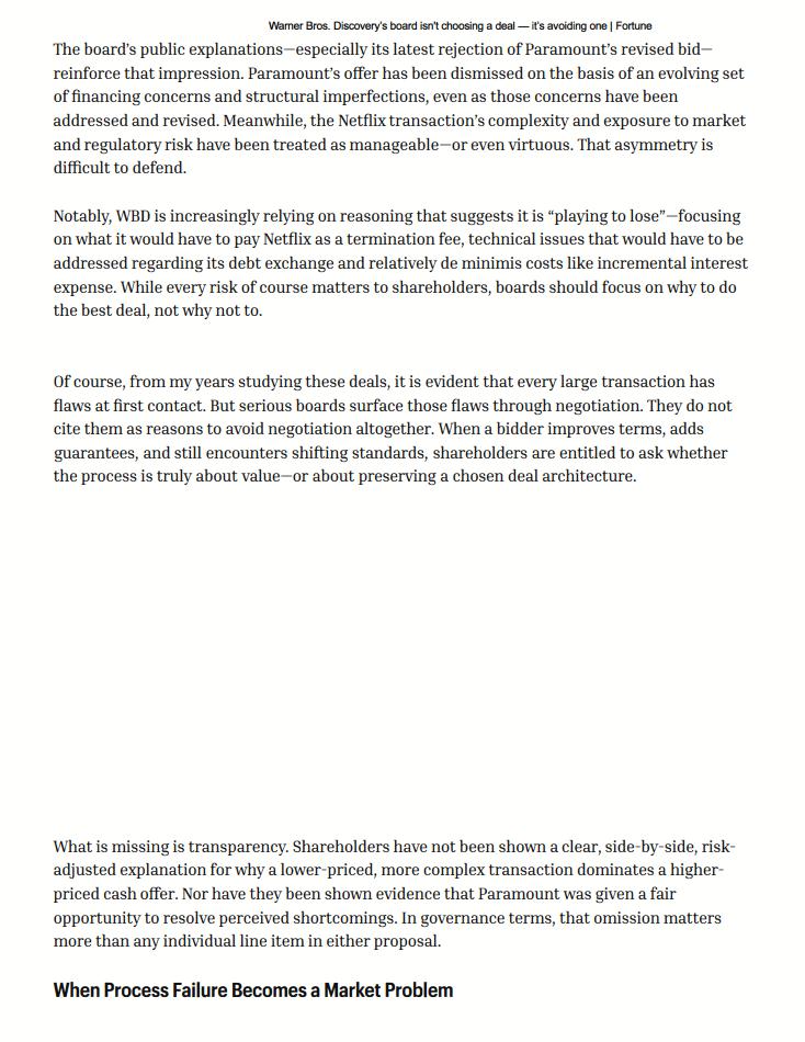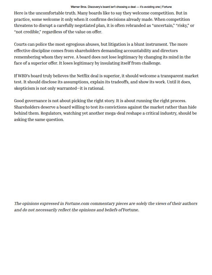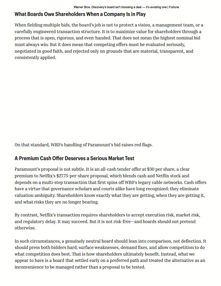 This communication does not constitute an offer to buy or a solicitation of an offer to sell securities. This communication relates to a proposal that Paramount has made for an acquisition of WBD and the Tender Offer that Paramount, through Prince Sub Inc., its wholly owned subsidiary, has made to WBD stockholders. The Tender Offer is being made pursuant to a tender offer statement on Schedule TO (including the offer to purchase, the letter of transmittal and other related offer documents), filed with the SEC on December 8, 2025. These materials, as may be amended from time to time, contain important information, including the terms and conditions of the offer. Subject to future developments, Paramount (and, if a negotiated transaction is agreed, WBD) may file additional documents with the SEC. This communication is not a substitute for any proxy statement, tender offer statement, or other document Paramount and/or WBD may file with the SEC in connection with the proposed transaction.